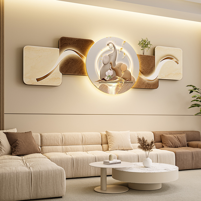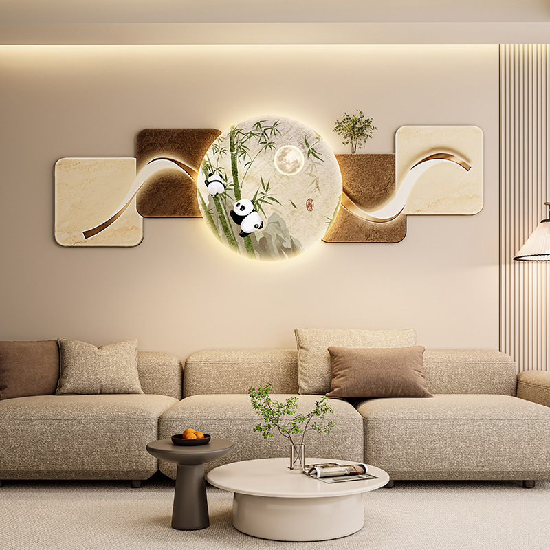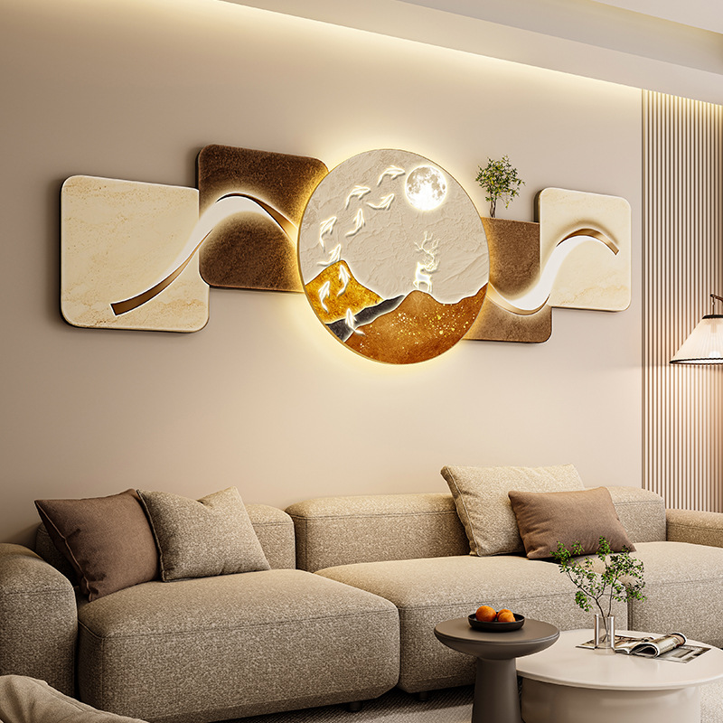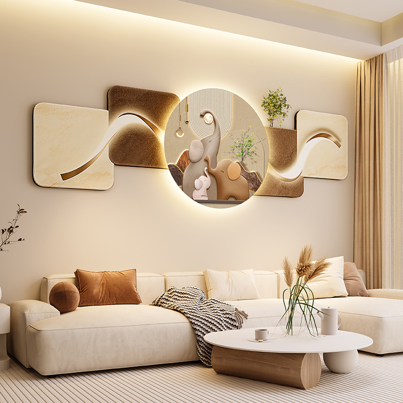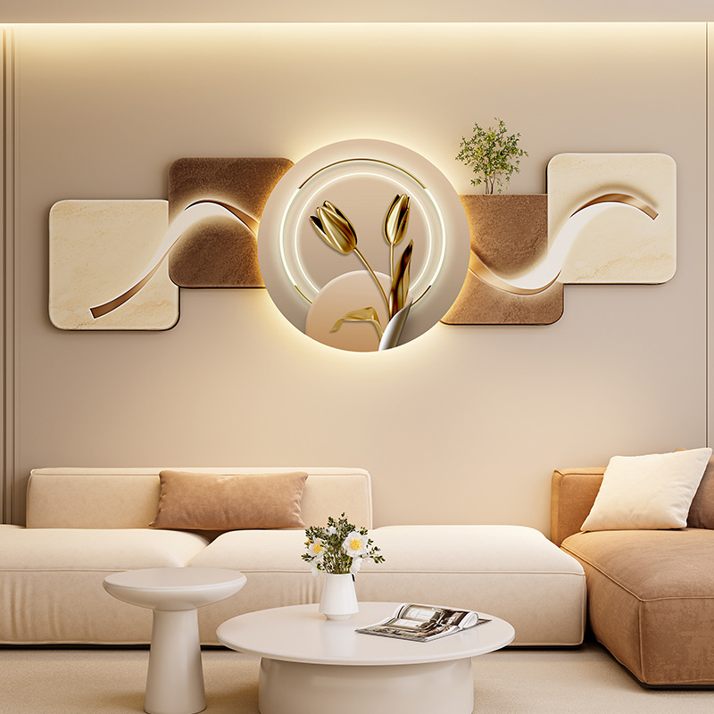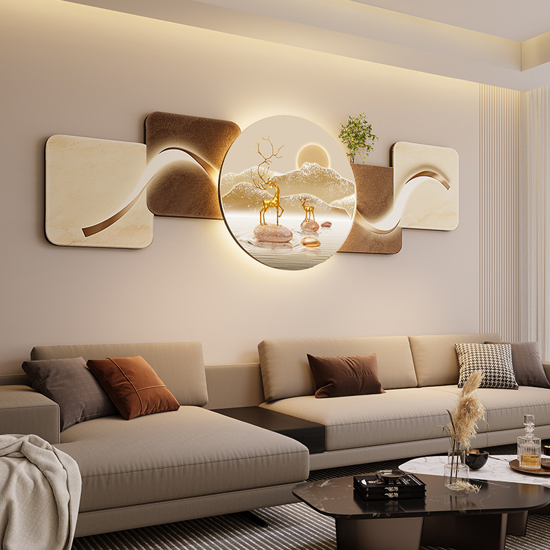 Современная минималистская гостиная декоративная роспись светодиодный свет баннер диван фон стены