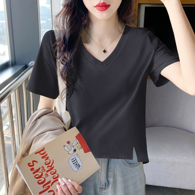 [Черный]-разрез по краю с V-образным вырезом/стиль хлопка