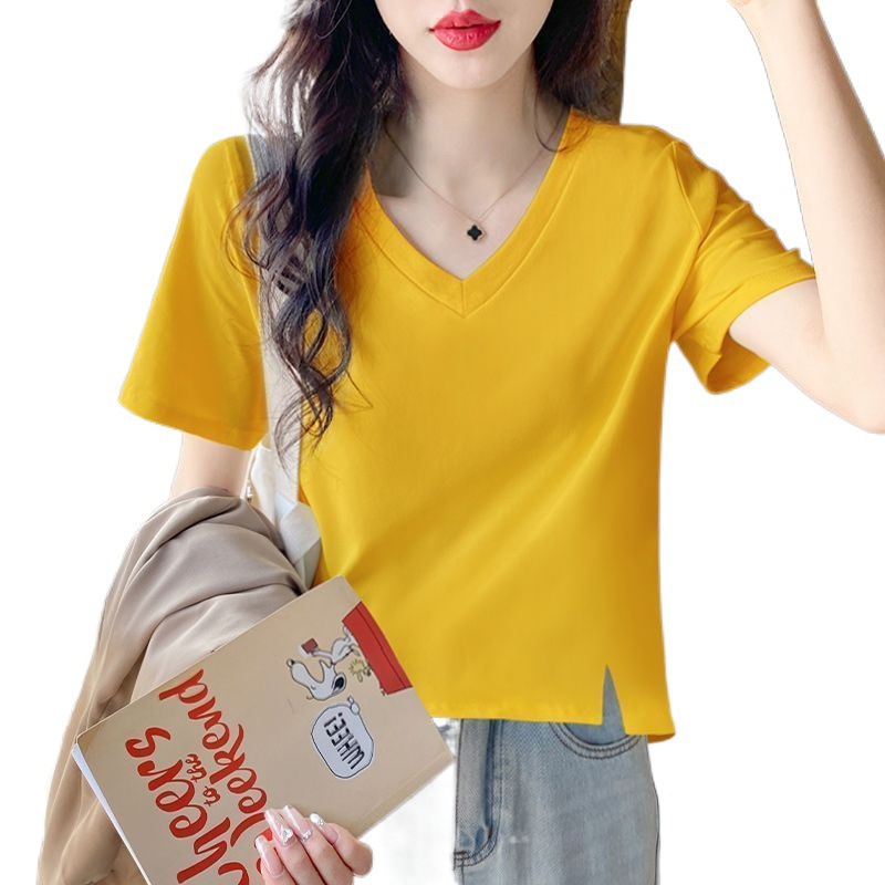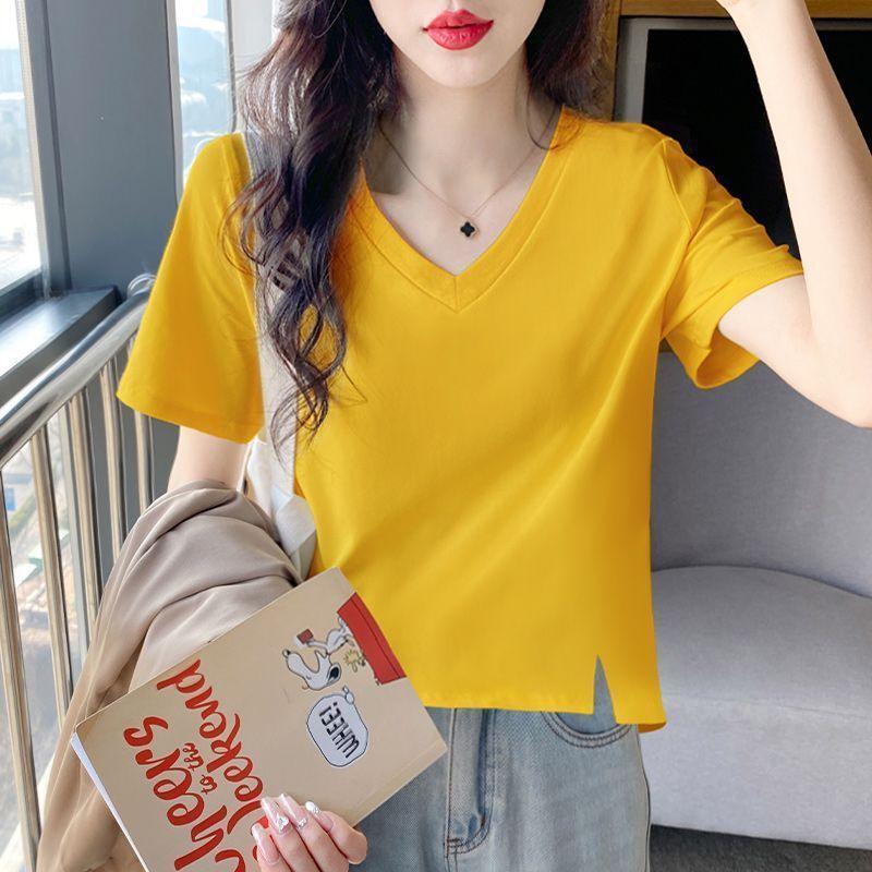 【Куркума】-разрез по краю с V-образным вырезом/стиль хлопка