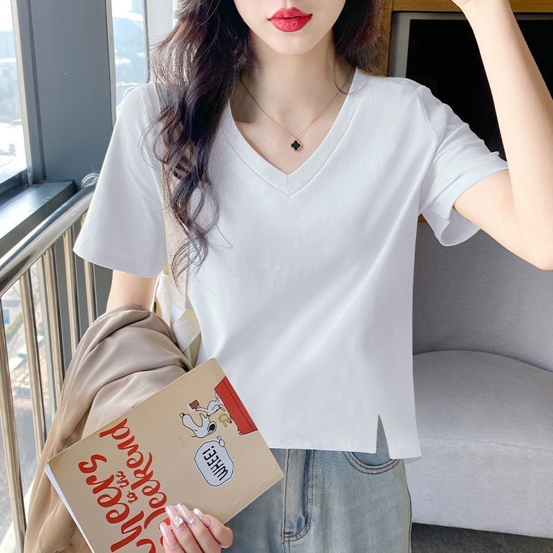 [Белый]-разрез по краю с V-образным вырезом/стиль хлопка