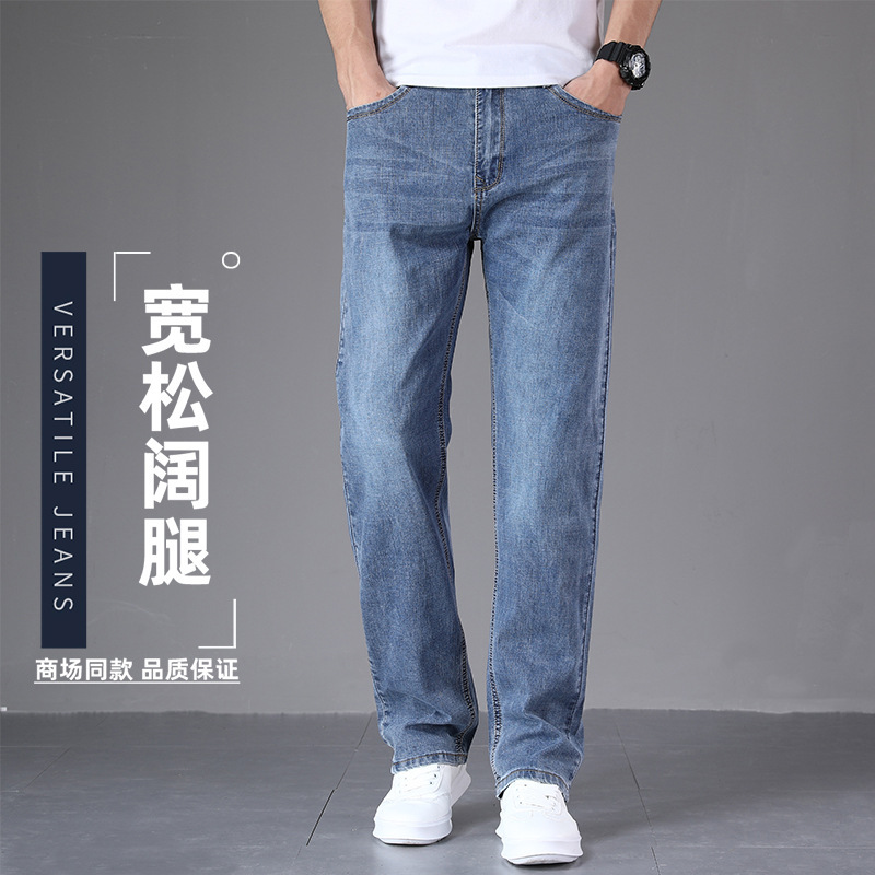 Главная страница > Высококачественные широкие джинсы мужские прямые свободные весенние осенние мужские брюки 2024 новые повседневные брюки