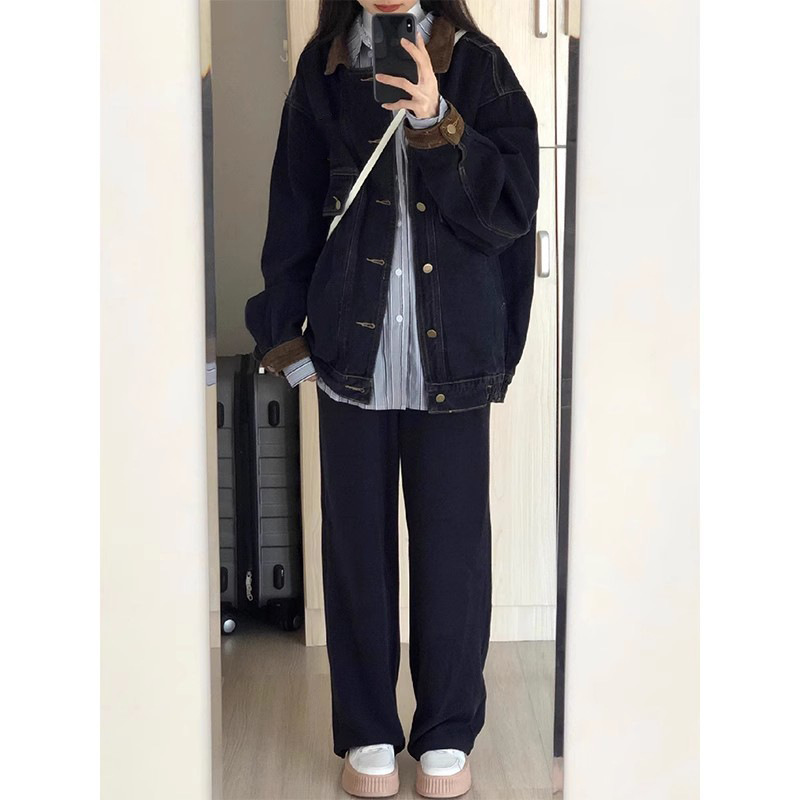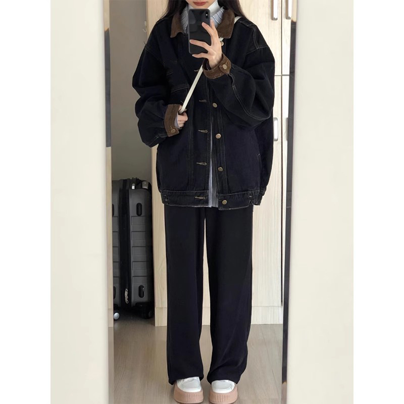Главная страница > Весна и осень 2024, черные джинсовые топы в гонконгском стиле в американском стиле ретро, женские свободные топы нового дизайна, топ