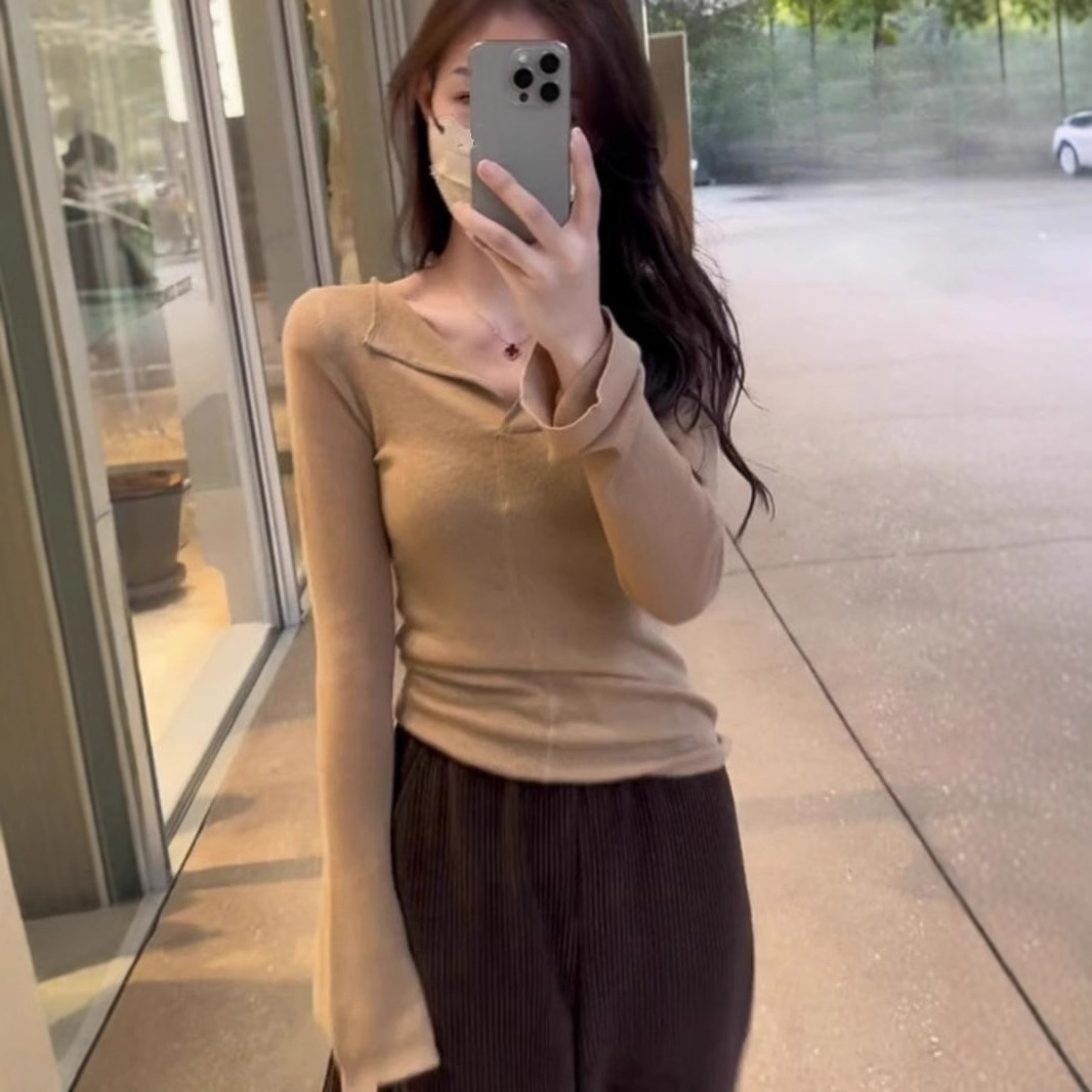 Красный свитер женский осенний и зимний продвинутый тонкий тонкий, тонкий свитер с длинными рукавами