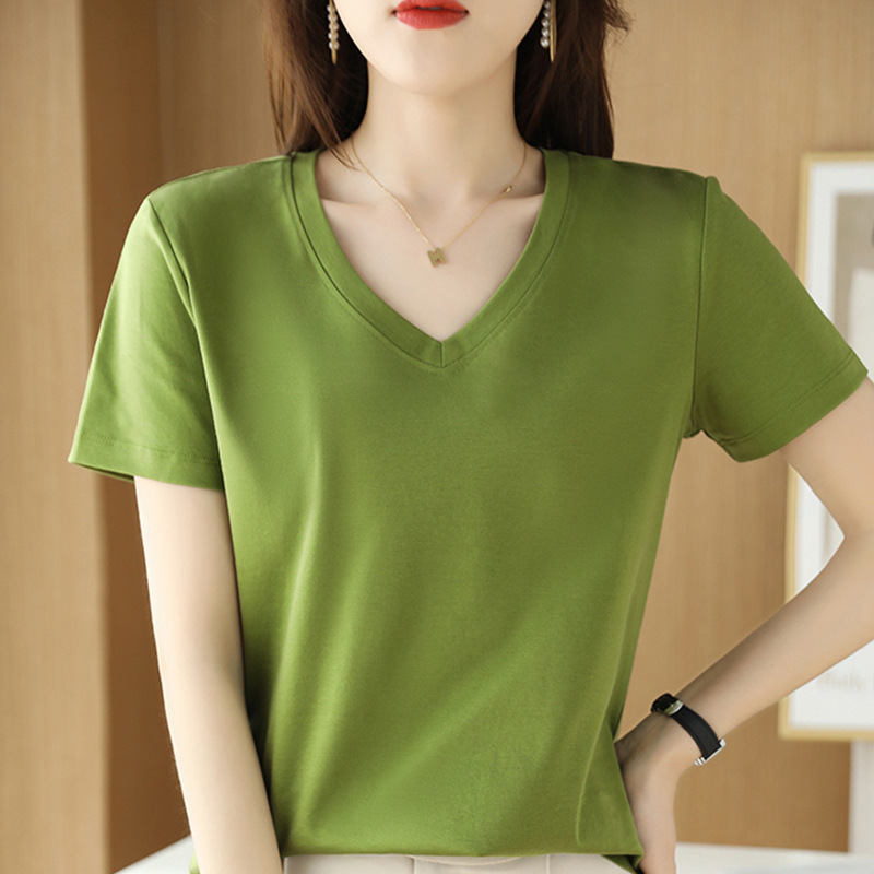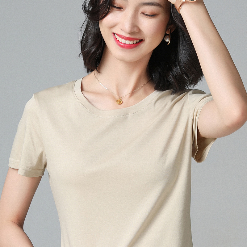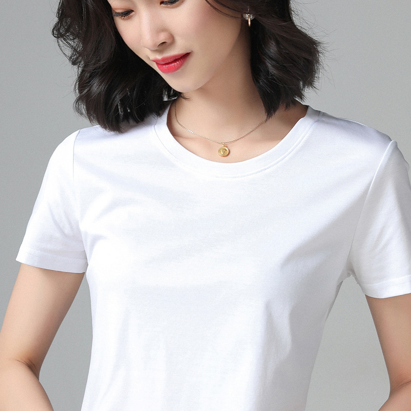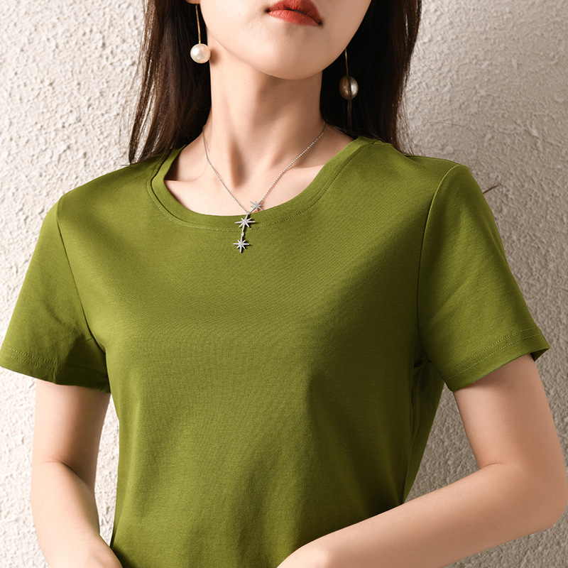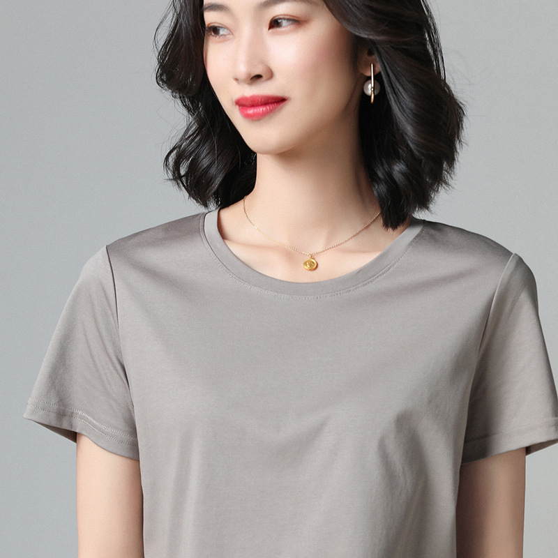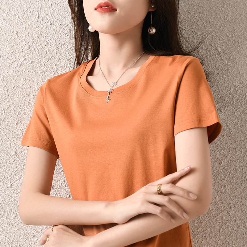 Главная страница > 2025 новый летний стиль, 80-счетная мерсеризованная хлопковая футболка, женская футболка с короткими рукавами и круглым вырезом, стильная тонкая футболка с половиной рукавов, однотонная футболка на правое плечо, модная