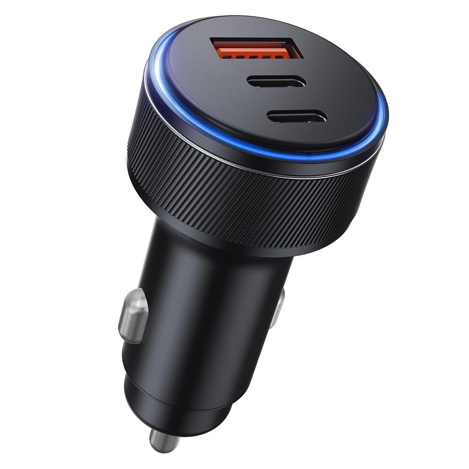 Металлическое автомобильное зарядное устройство PD60W, трехпортовое устройство для сверхбыстрой зарядки