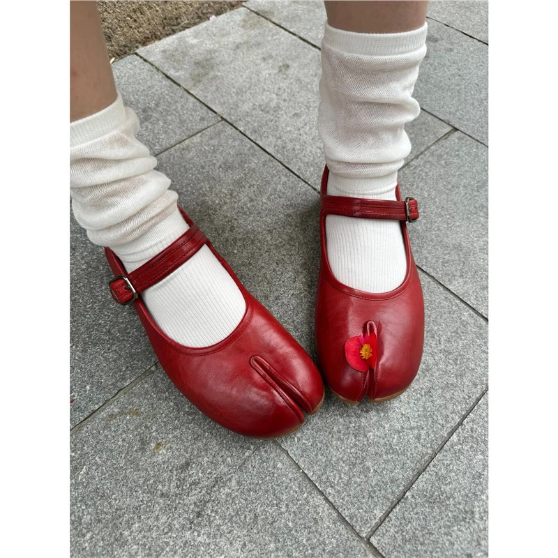 Версия из овчины ~ ретро потертый цвет, полированные туфли на плоской подошве с пряжкой и неглубоким ртом, туфли Мэри Джейн, женские маленькие красные туфли с разрезом на носке