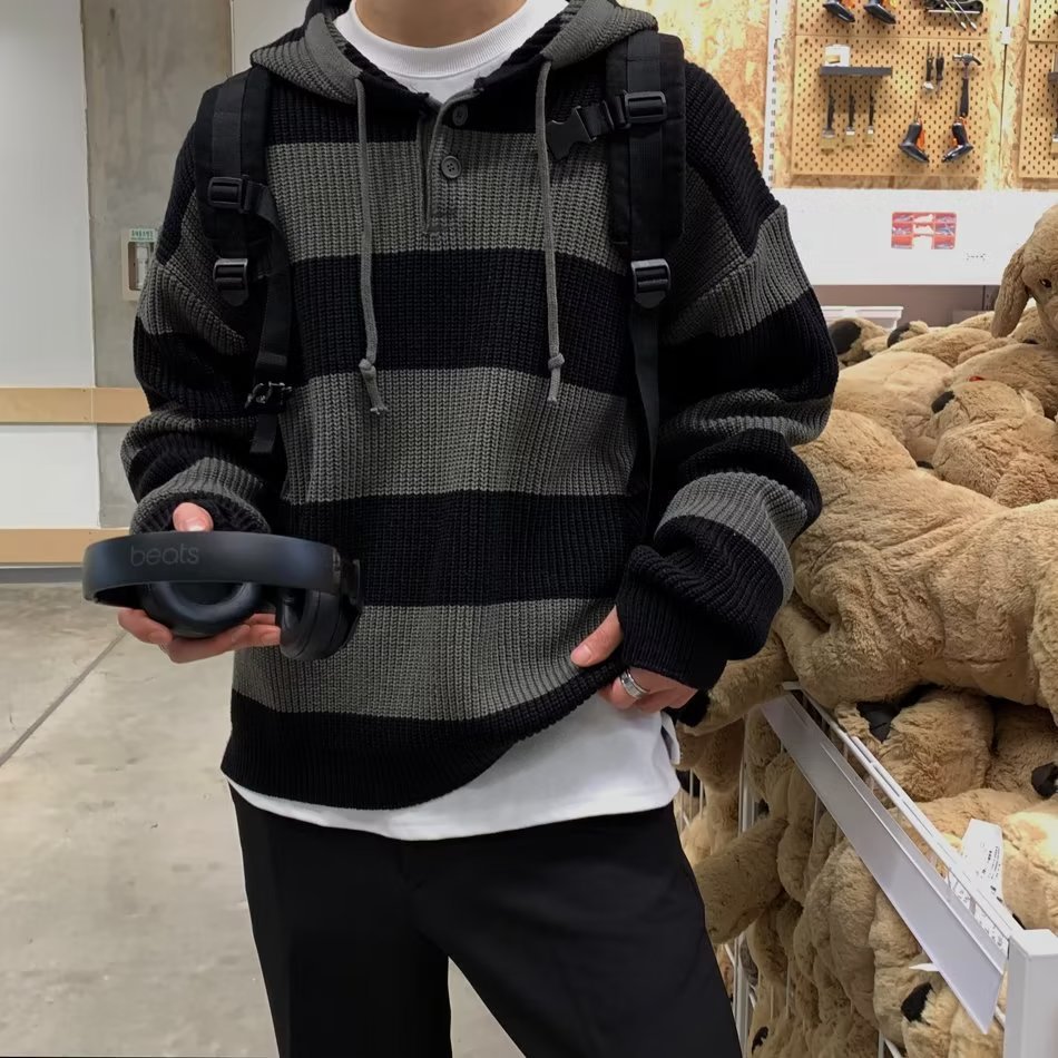Главная страница > Ретро корейский вязаный свитер дизайн блузка свободная американская гавань ленивый свитер мужской топ