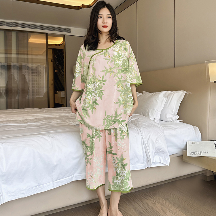 Главная страница > Летние и осенние женские пижамы больших размеров с принтом в китайском стиле, домашняя одежда с круглым вырезом, брюки три четверти, короткий рукав, толстый костюм ММ, можно носить на улице
