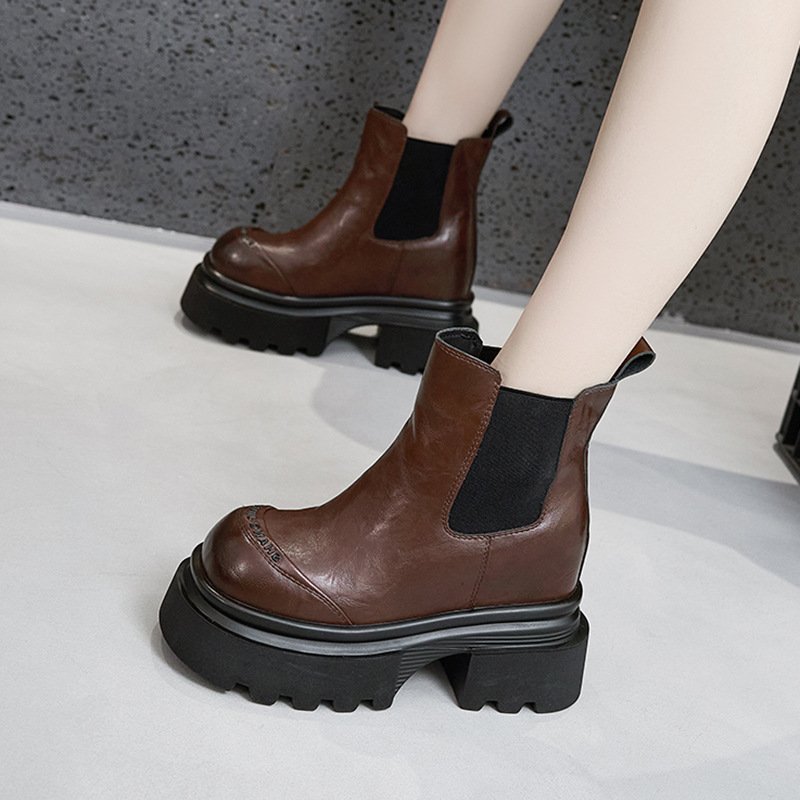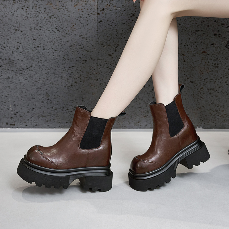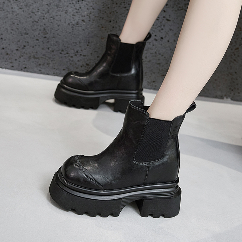Главная страница > Женские ботинки Мартин на толстой подошве, новинка осени-зимы 2025, увеличивающие рост, на массивном каблуке, короткие, без застежек, универсальные ботинки-чимейны.