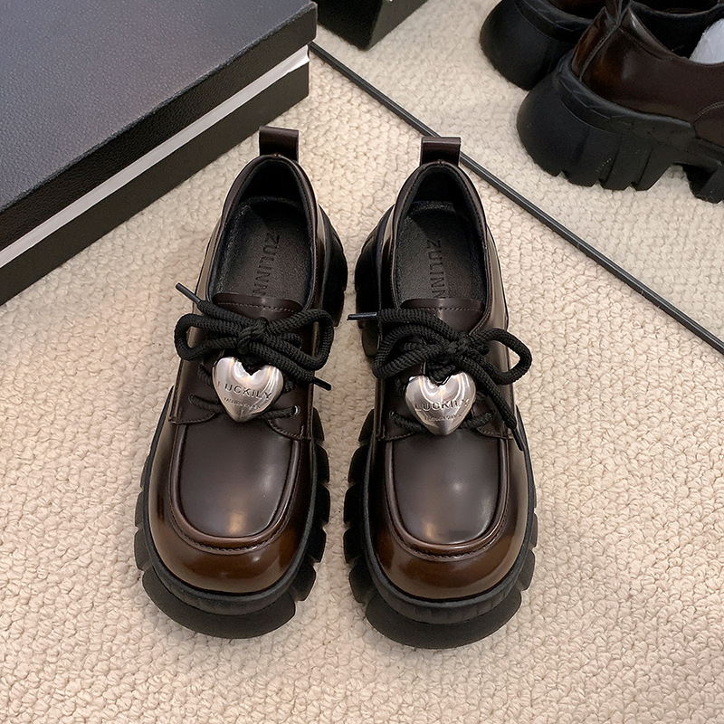 Главная страница > Женские лоферы на толстой подошве 2024 Весна Новые кожаные туфли из натуральной кожи с милой металлической пряжкой Туфли на высоком каблуке в стиле преппи
