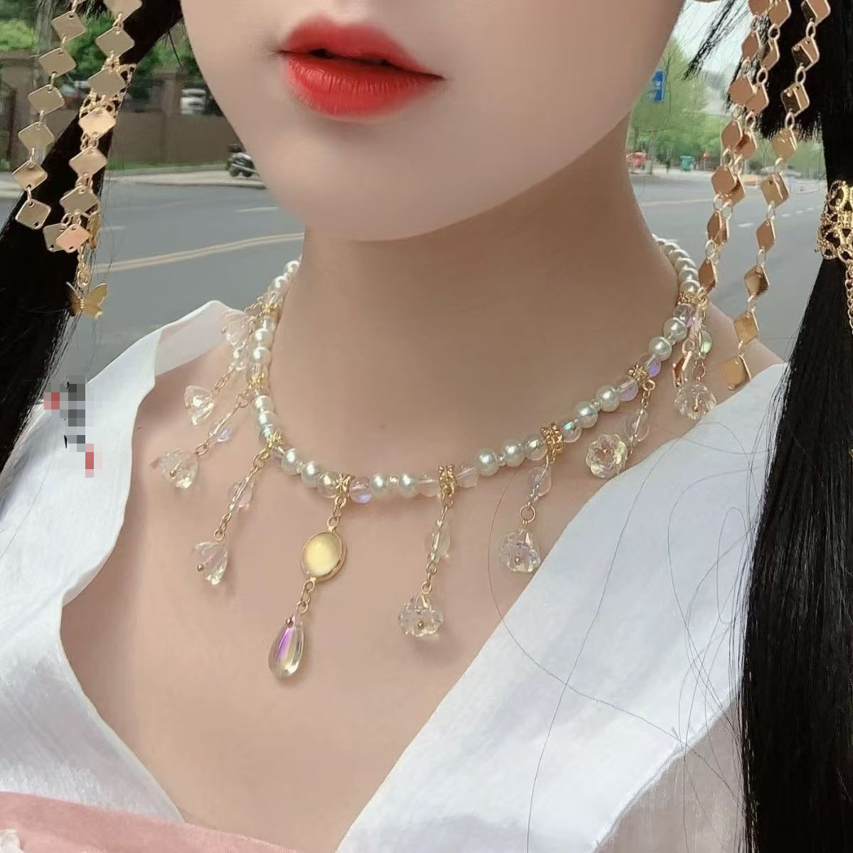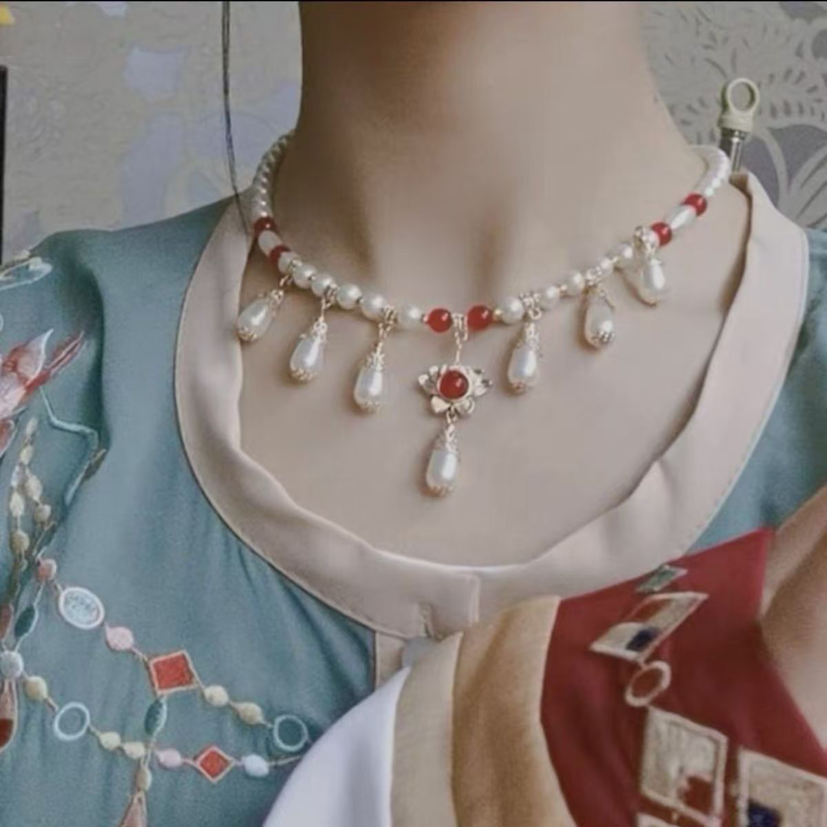 Главная страница > �� Жемчужное ожерелье с бахромой. Женские ожерелья в древнем стиле. Китайский стиль жемчужный кулон.