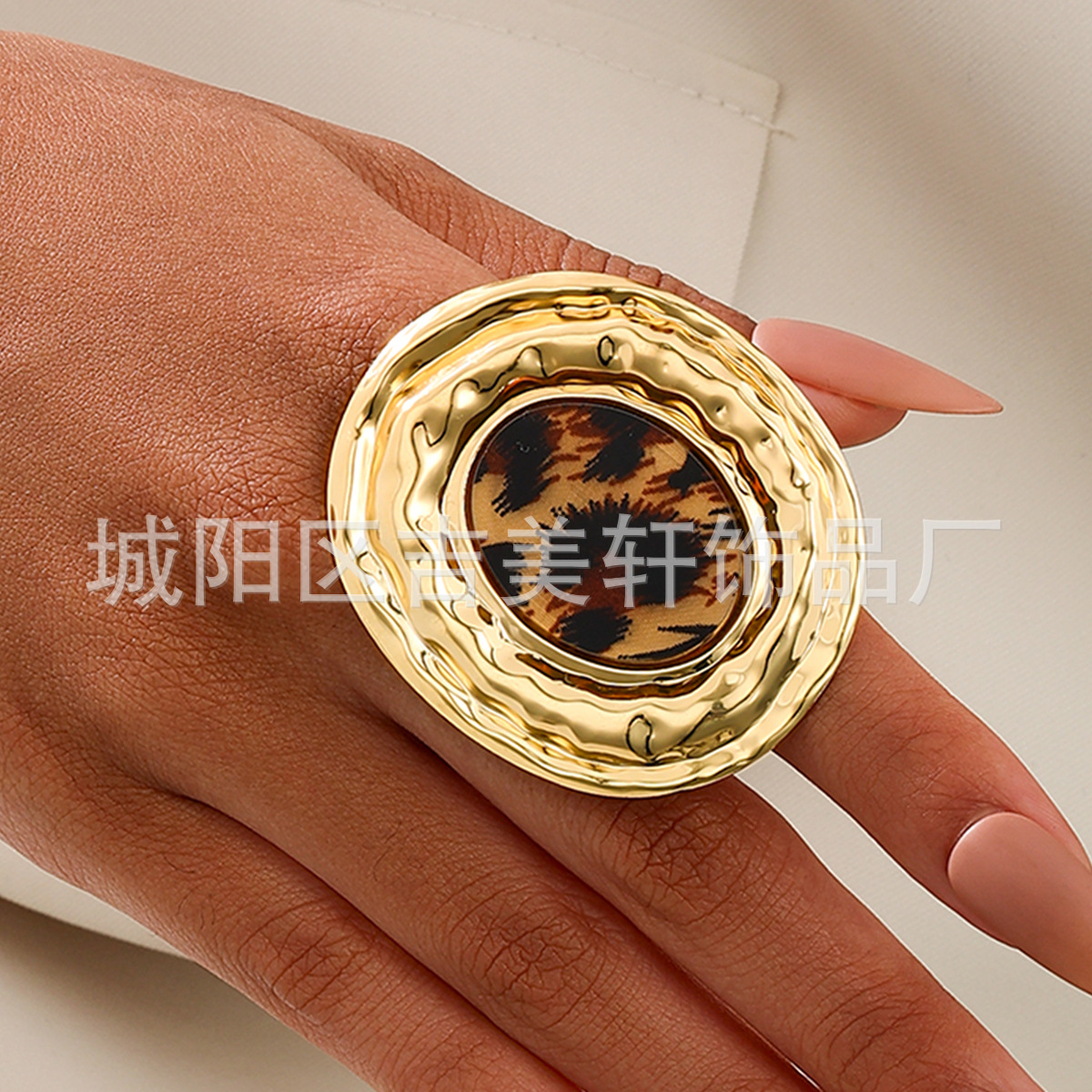 Модные нерегулярные геометрические овальные кольца с леопардовым узором