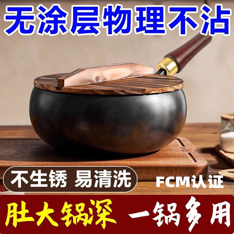 Сертифицированная FCM маленькая чугунная сковорода для домашнего использования, глубокая сковорода для жарки, антипригарная сковорода без покрытия, традиционная большая сковорода с широким дном, оптовая продажа кухонной посуды