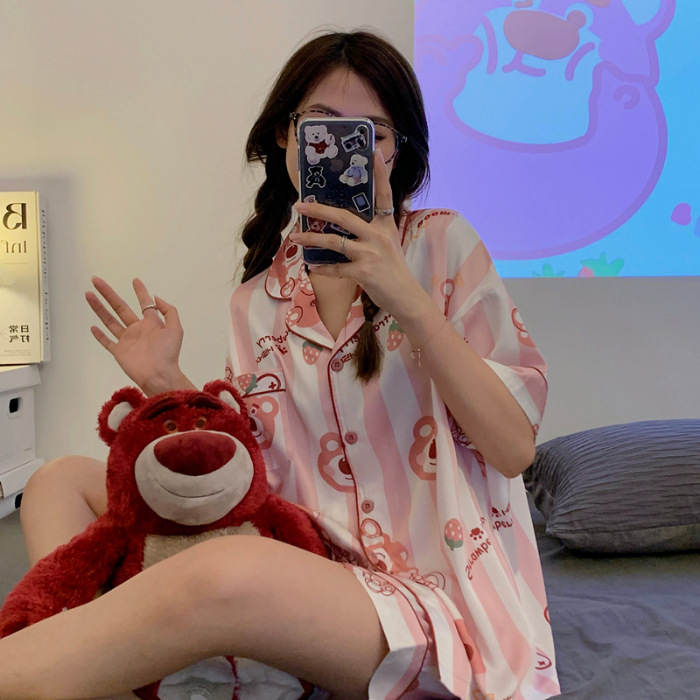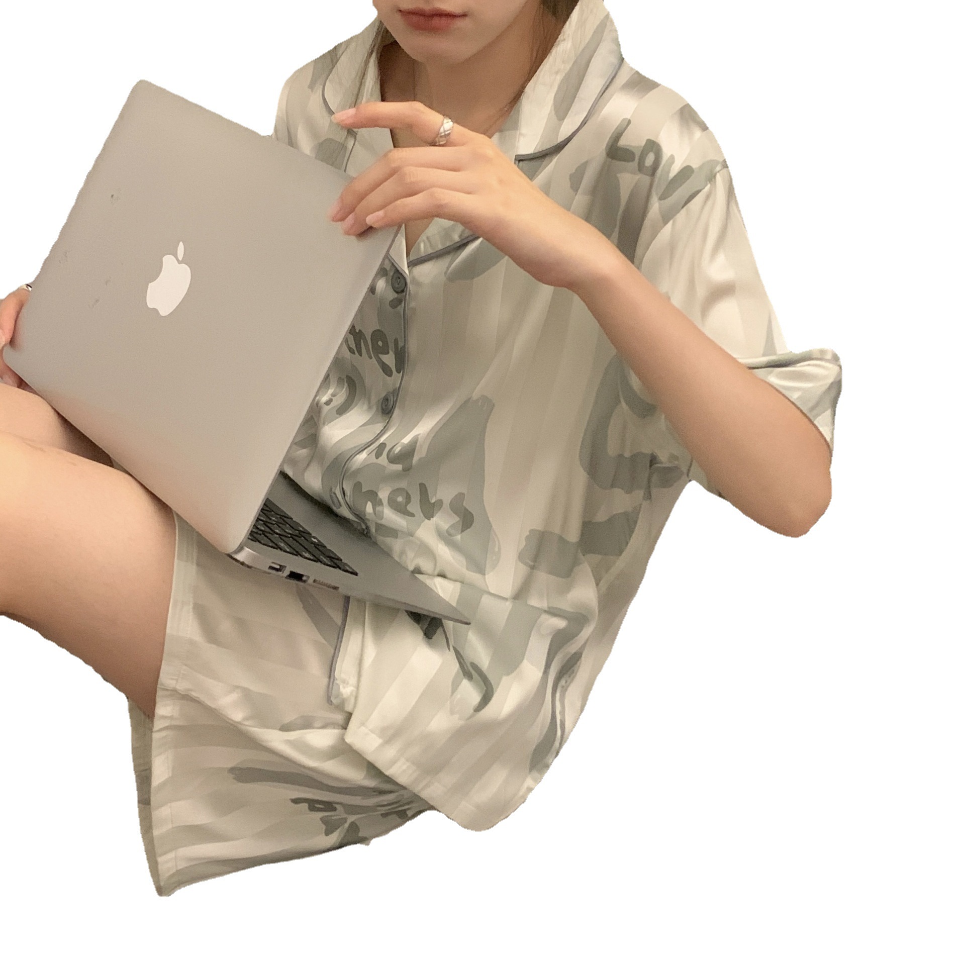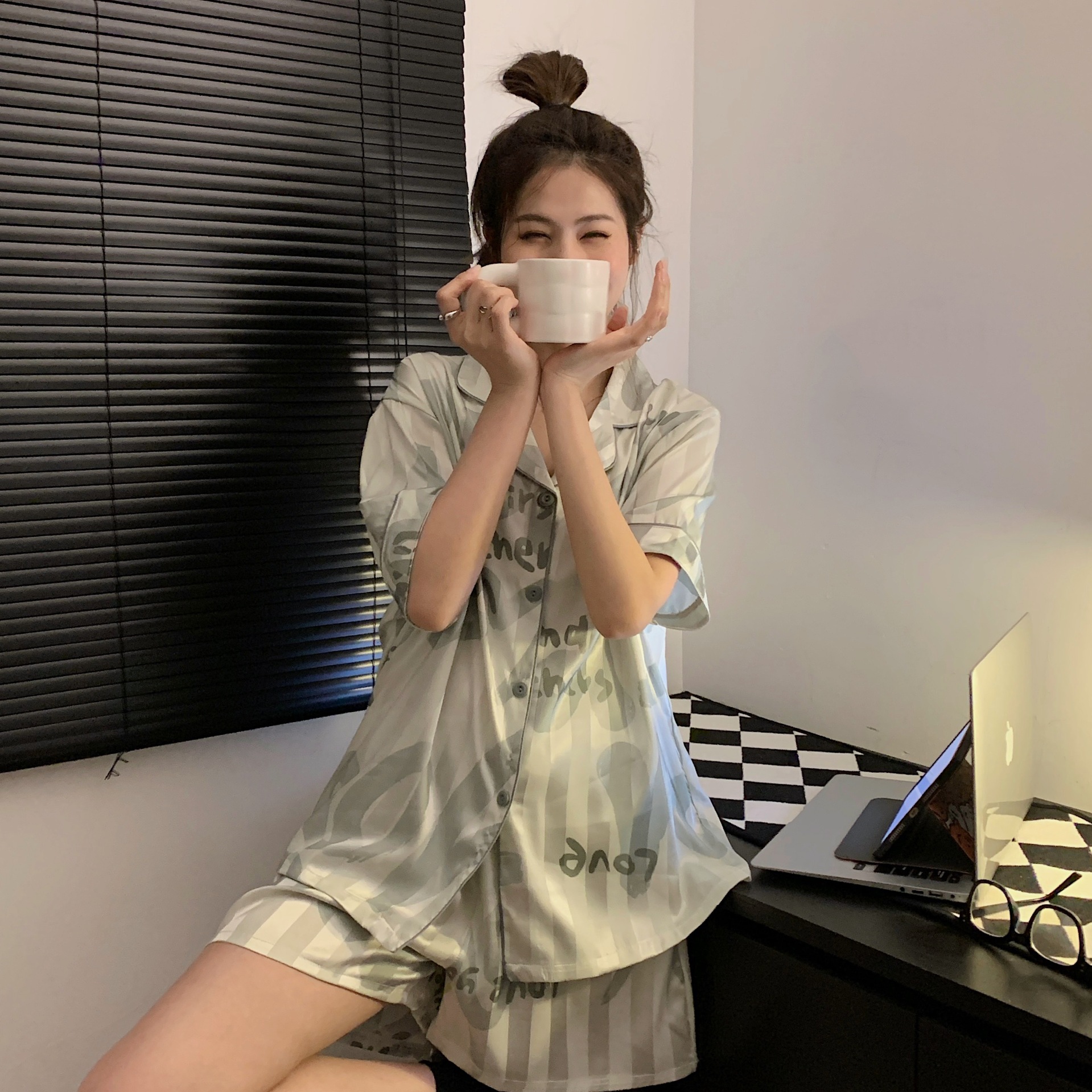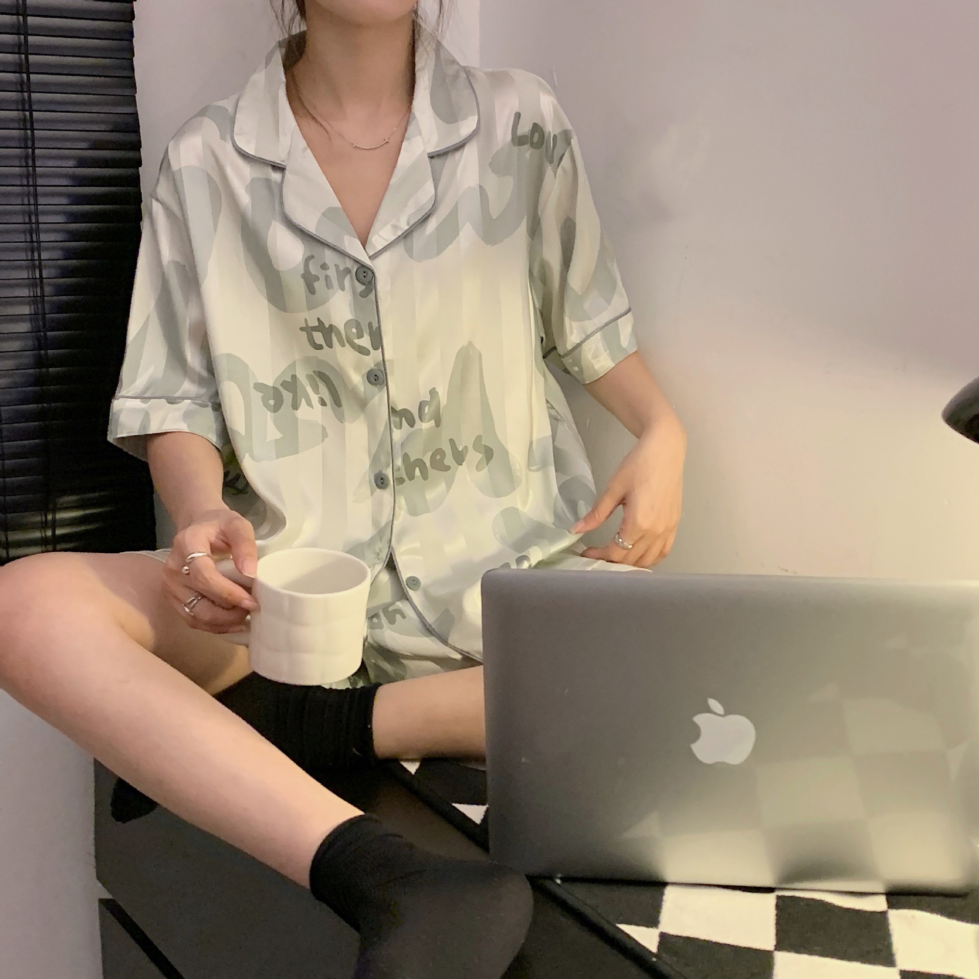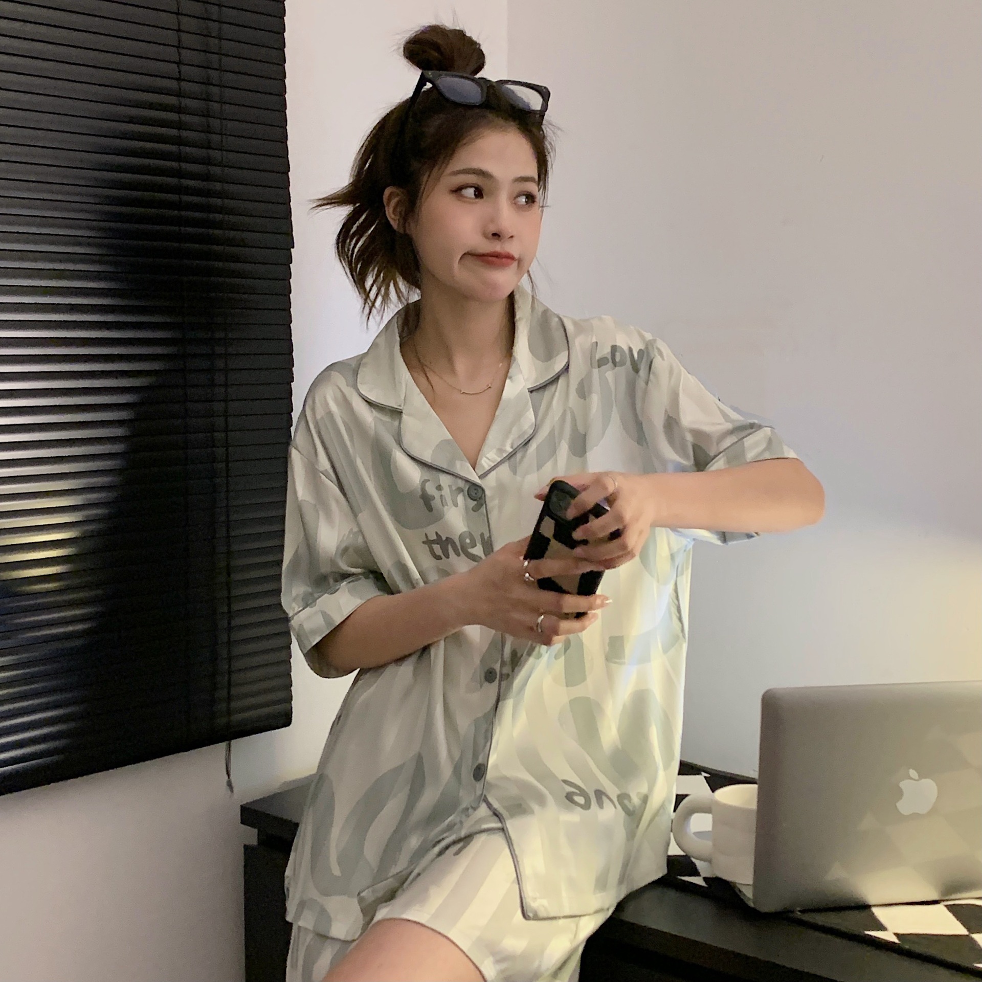 Главная страница > Женская пижама из ледяного шелка, новый летний тонкий костюм с короткими рукавами, летний костюм из искусственного шелка, стильная Домашняя одежда, 2023