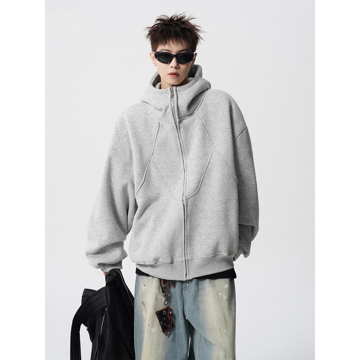 Нерегулярная сшитая куртка куртка мужской зимний американский дизайн плюс плюшевая толстовка прилив универсальный повседневный свитер