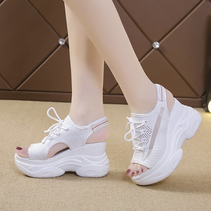 Главная страница > Босоножки на танкетке женские летние Новые дышащие сетчатые сандалии на толстой подошве на шнуровке с рыбьим ртом, повседневные спортивные сандалии, оптовая продажа