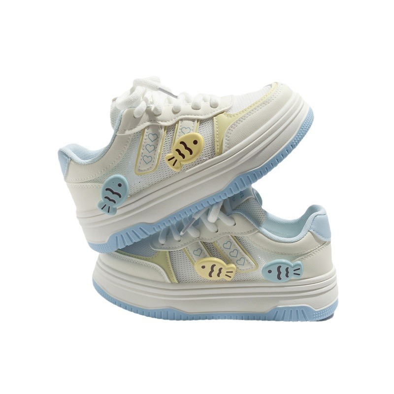 Главная страница > Корейская версия голубой с толстой подошной сеткой маленькая белая обувь женская 2025 новая летняя дикая повседневная милая рыба дышащая доска обувь