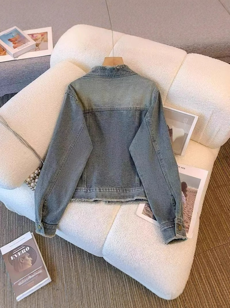 Главная страница > Ретро мойка джинсовая куртка женская весна и осень новая корейская версия свободного дикого маленького короткого пиджака