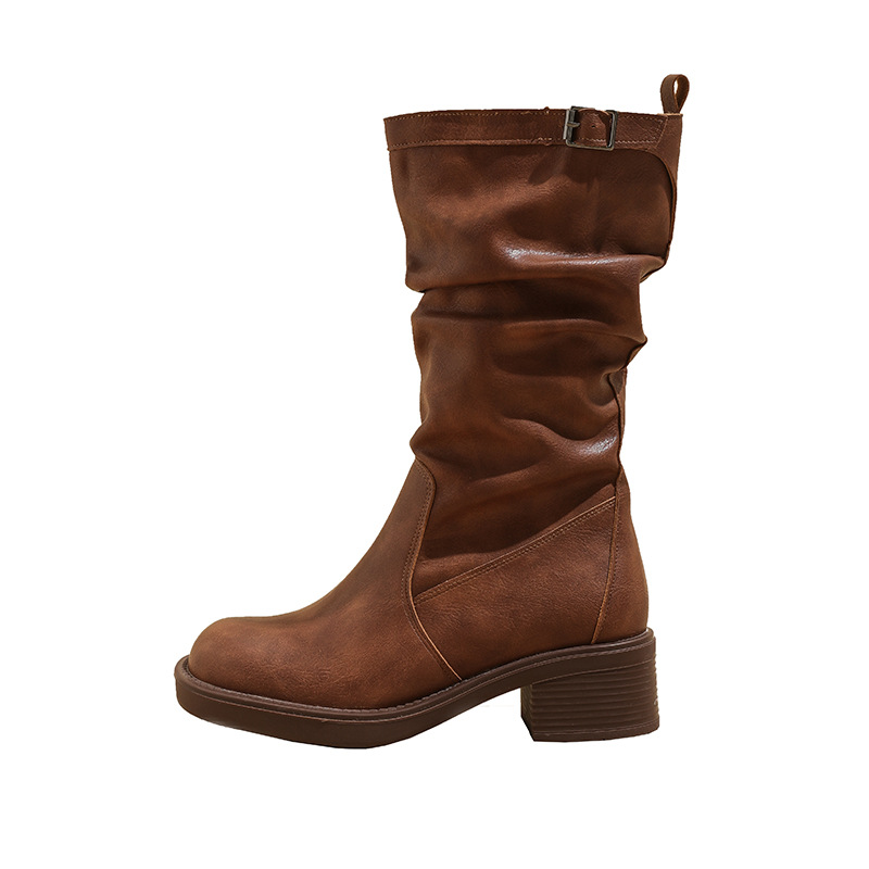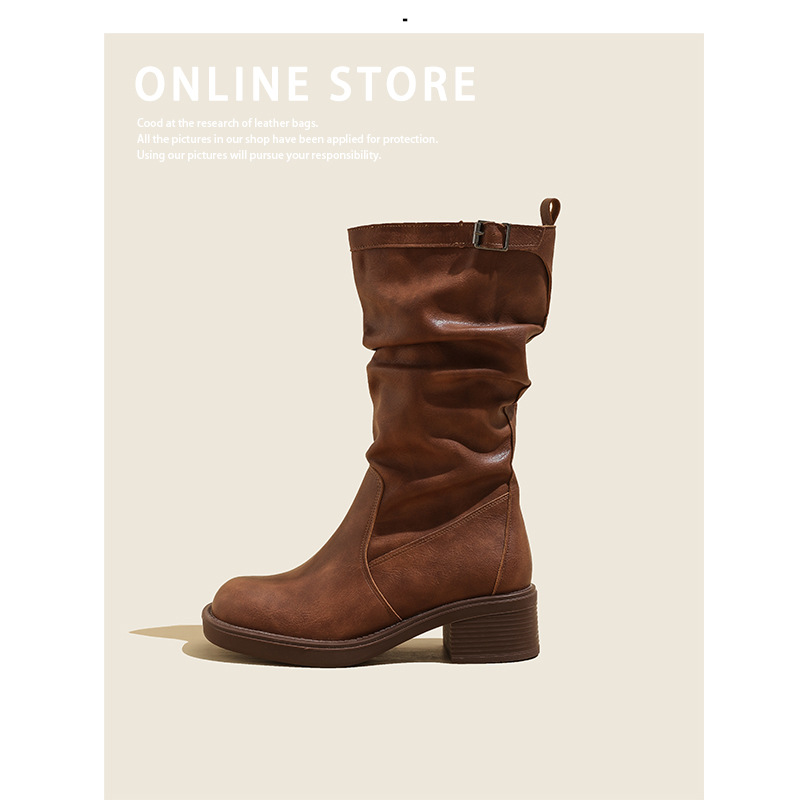 Главная страница > Поднятые короткие сапоги на толстом каблуке тонкие сапоги женские 2024 новые ретро коричневые западные сапоги джинсовые сапоги женские весной и осенью