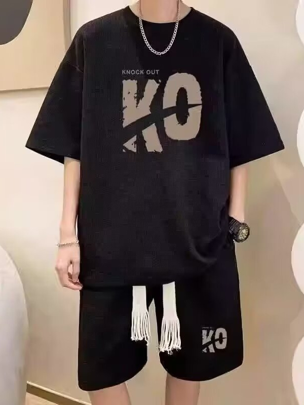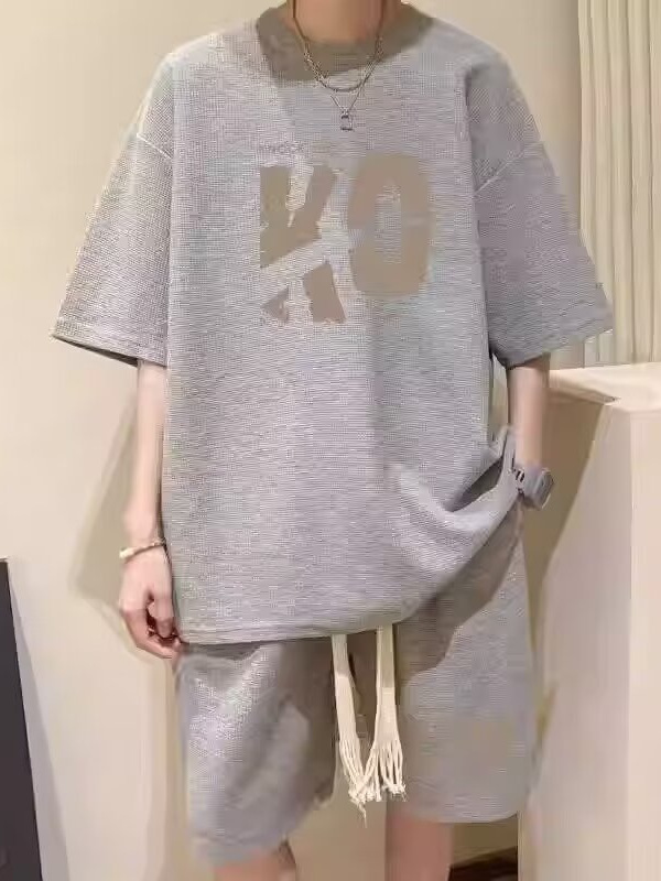 Главная страница > Летний спортивный повседневный вафли набор мужской корейской версии с круглым вырезом с короткими рукавами повседневный комфорт и красивый набор из двух частей