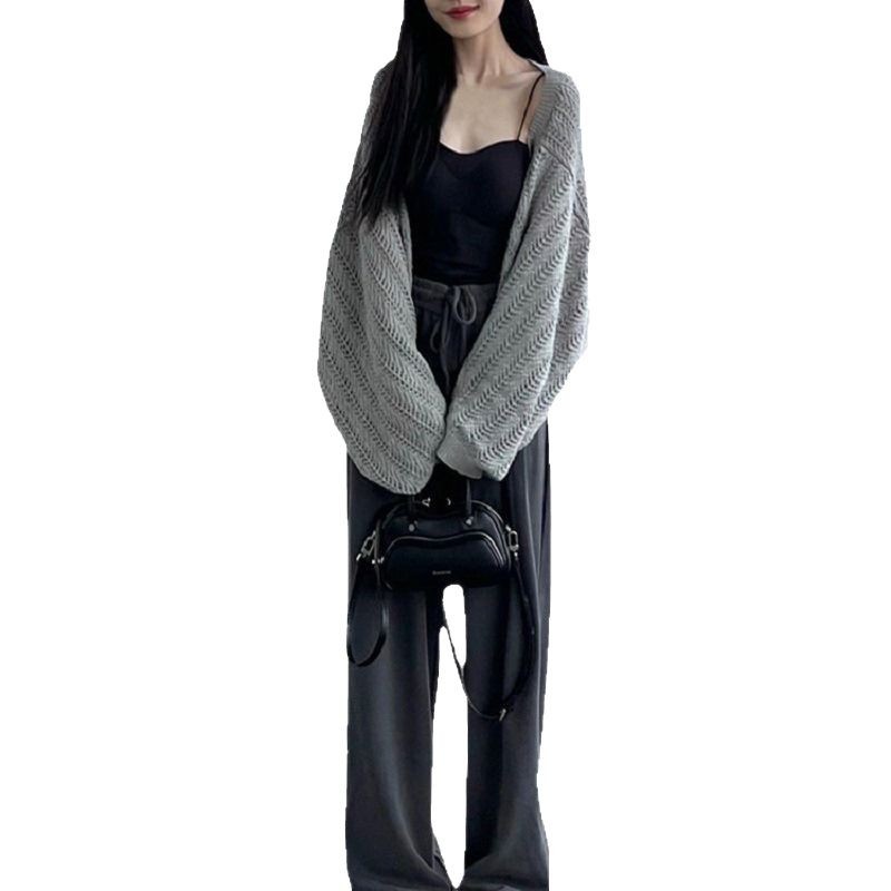 Главная страница > Серая тонкая полая солнцезащитная трикотажная кардигана женская летняя топ премиум-класса