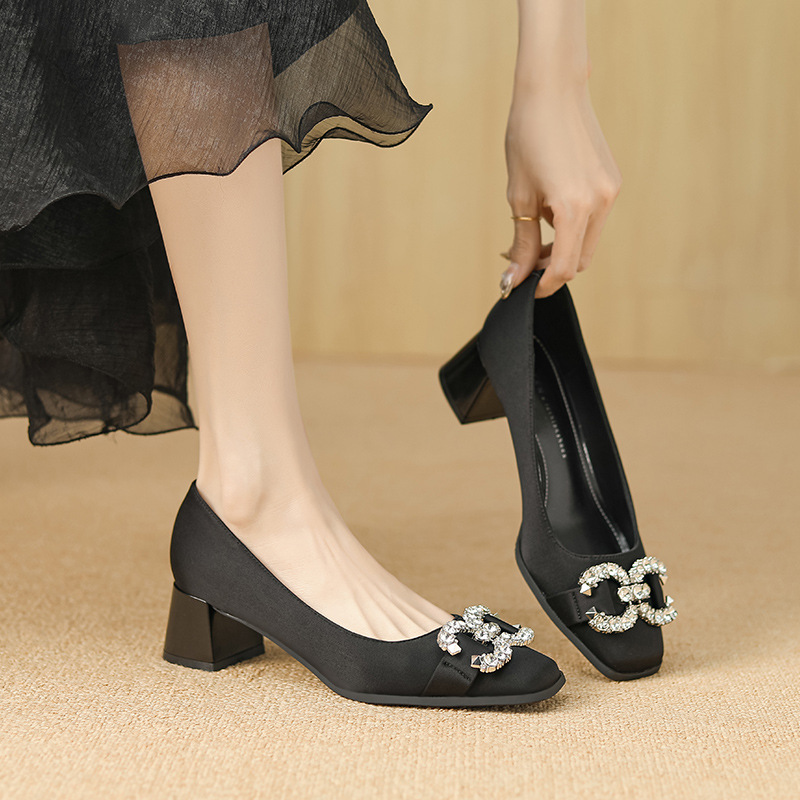 501 [Спот] Новая мода толстая каблуковая квадратная пряжка