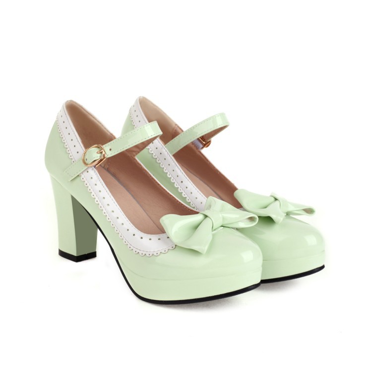 Главная страница > Сладкий бант конфеты зеленый мелкий рот однослойные туфли ремешок толстые высокие каблуки 33-46 размер плюс размер внешней торговли обувь