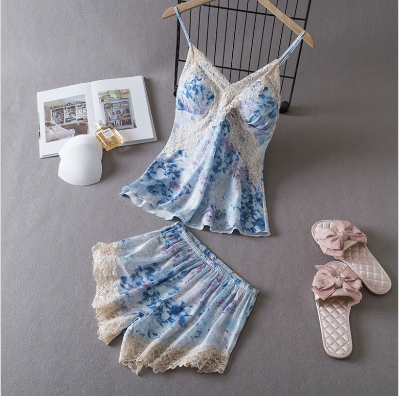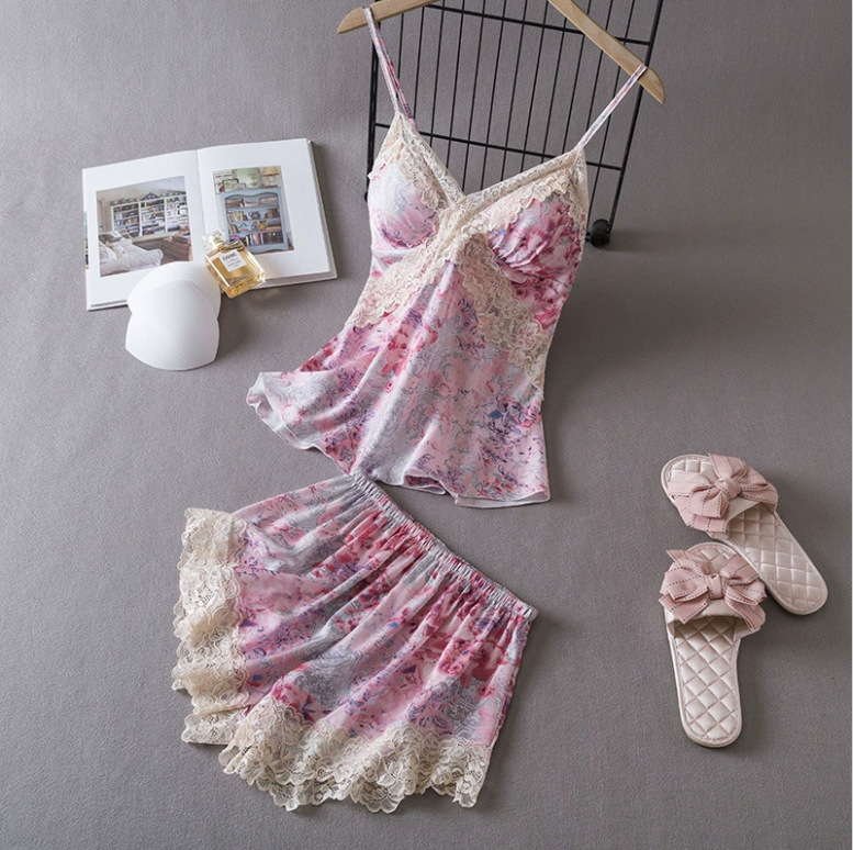 Ледяная лента нагрудный коврик с пижамой женская летняя тонкая корейская версия сексуальная сладкая чистая желание принцессы ветер кружева домашняя одежда