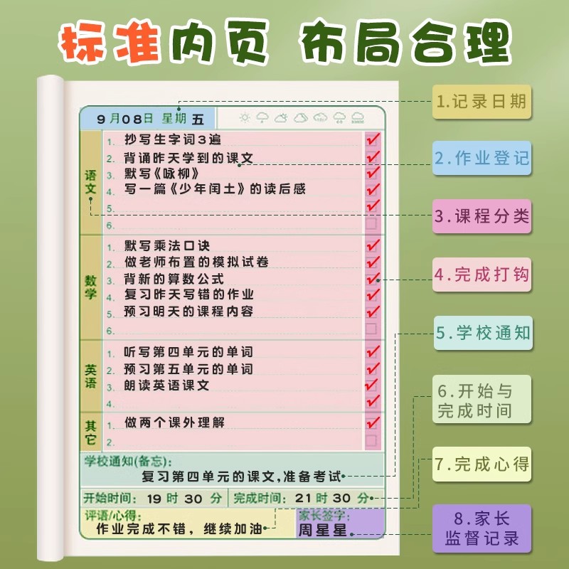 Книга регистрации домашних заданий учащихся младших классов средней школы
