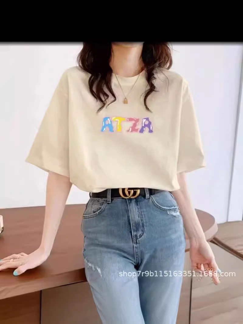Главная страница > 2024 новая модель хлопчатобумажная футболка с короткими рукавами свободная версия с круглым вырезом для мужчин и женщин пара высокого класса топы для женщин оптом