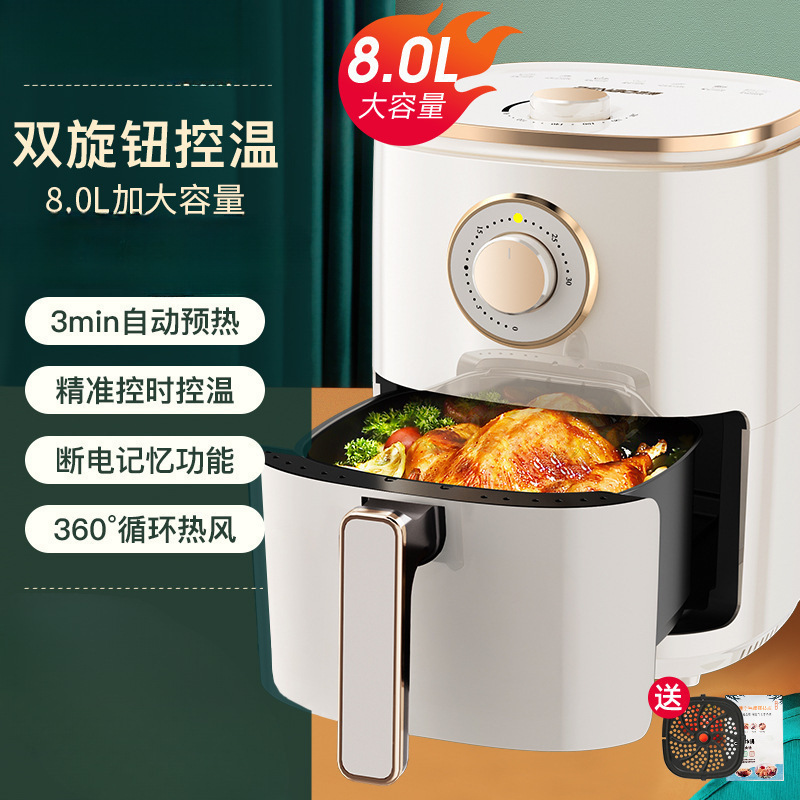[Верхний сенсорный ЖК-экран/белый 8,0 л] Высокая огневая мощь 1400 Вт + импортный чип + безмасляный антипригарный вкладыш + 8 основных обновленных функций
