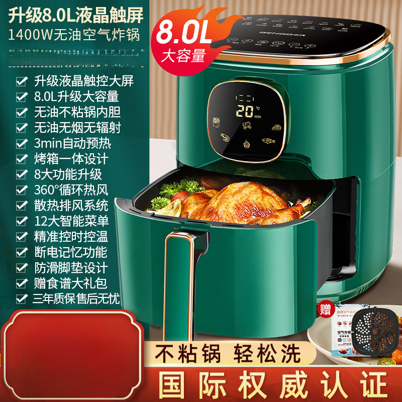 [Топ с сенсорным ЖК-экраном/зеленый 8,0 л] Высокая огневая мощь 1400 Вт + импортный чип + безмасляный антипригарный вкладыш + 8 основных функций обновления