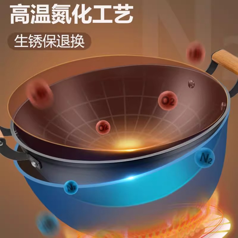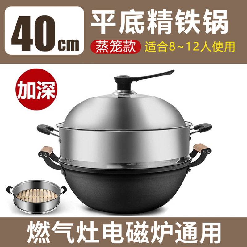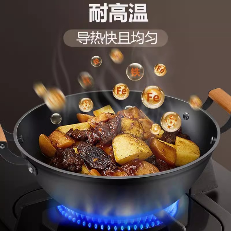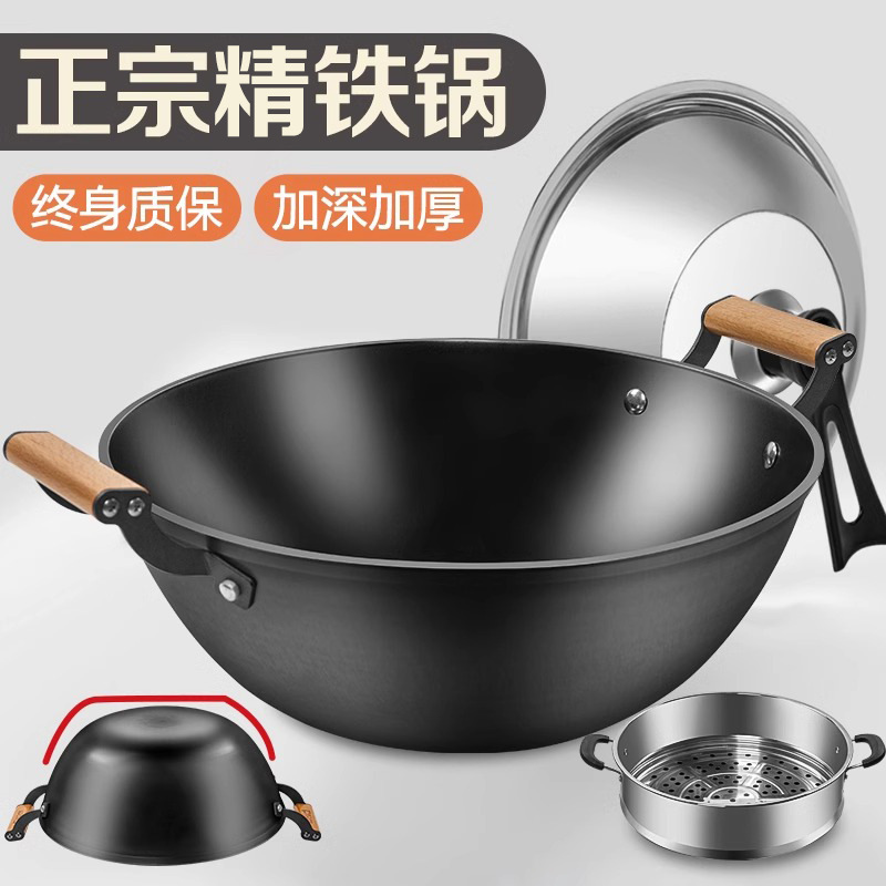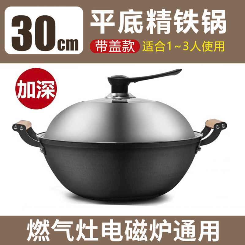 Углубить и утолщать старомодный плоскоусторонний железный вок вок
