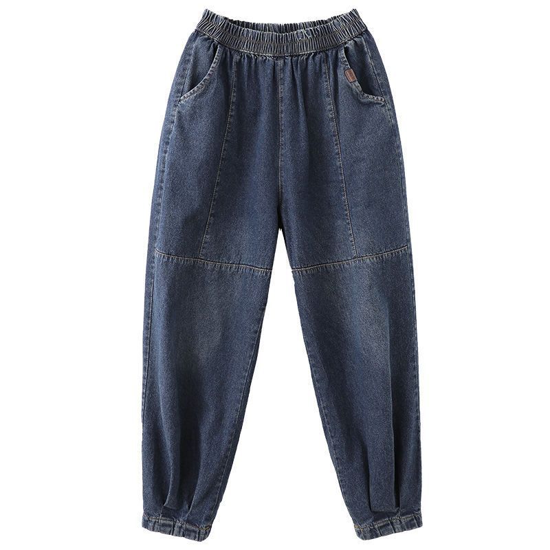 Главная страница > Весенне-летние новые женские джинсы, новые художественные повседневные свободные длинные брюки с эластичной резинкой на талии, элитные шаровары для бега в стиле ретро.