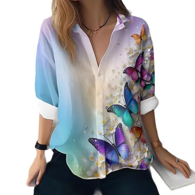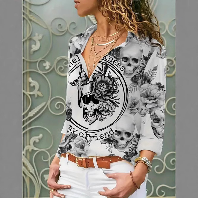 Главная страница > Новая женская рубашка с длинным рукавом в стиле ретро, универсальная, повседневная, с высококачественной печатью, для трансграничной торговли, коллекция 2025 года, европейский и американский стиль.