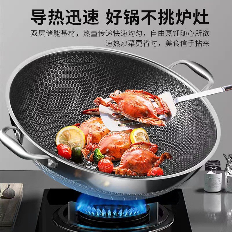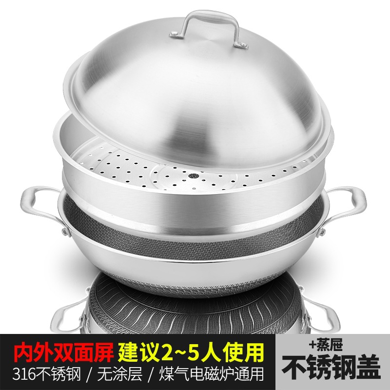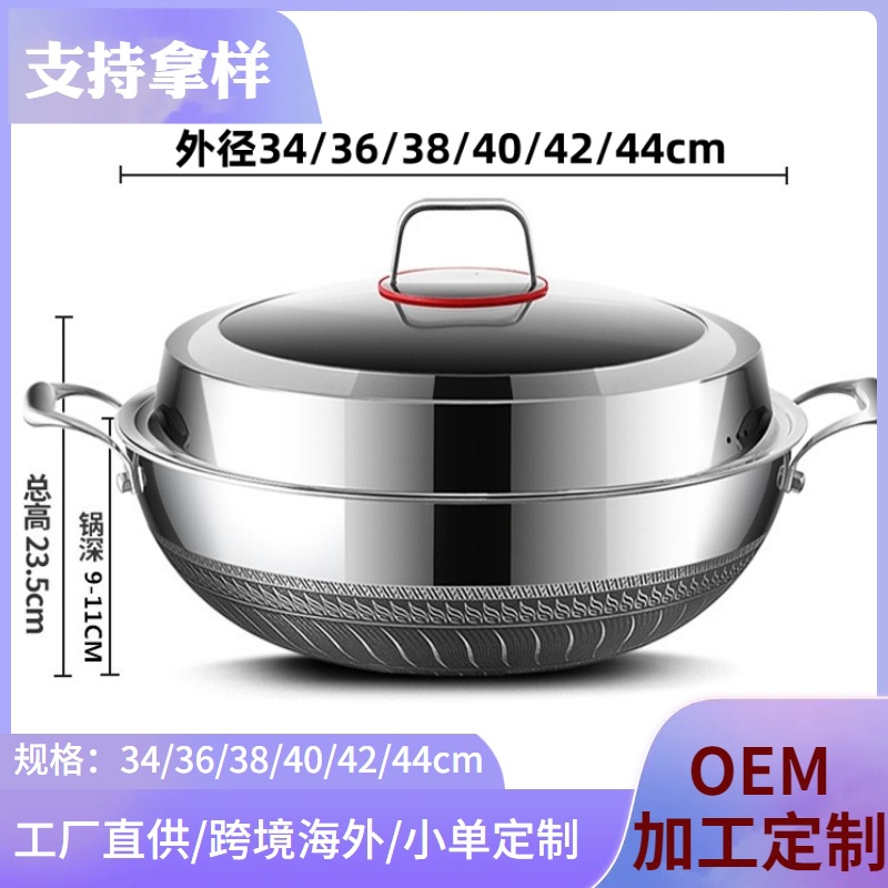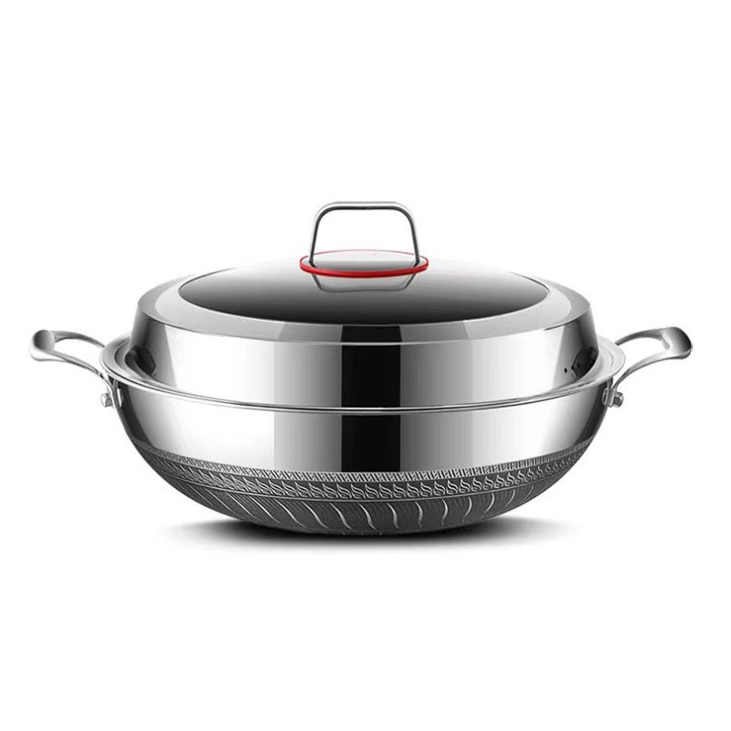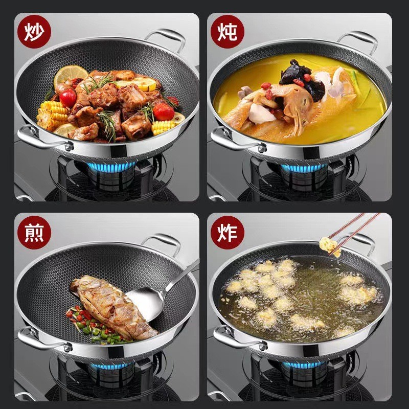 Главная страница > Большой вок из нержавеющей стали 316, 38, 40, 42 см, с двумя ручками, для дома, с антипригарным покрытием, кастрюля для тушения