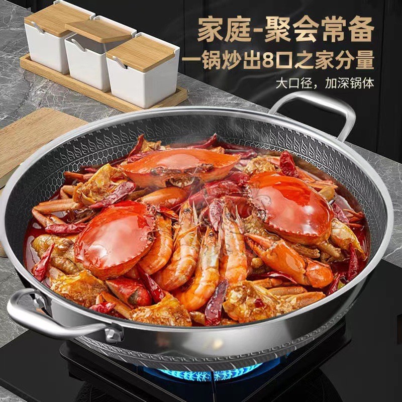 Большой вок из нержавеющей стали 316, 38, 40, 42 см, с двумя ручками, для дома, с антипригарным покрытием, кастрюля для тушения