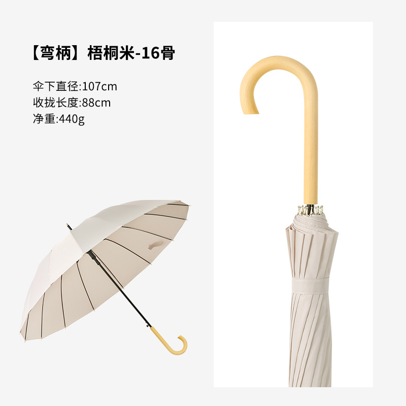 Зонт Wutong с увеличенной ручкой из риса и 16 костей (изогнутая ручка из цельного дерева)