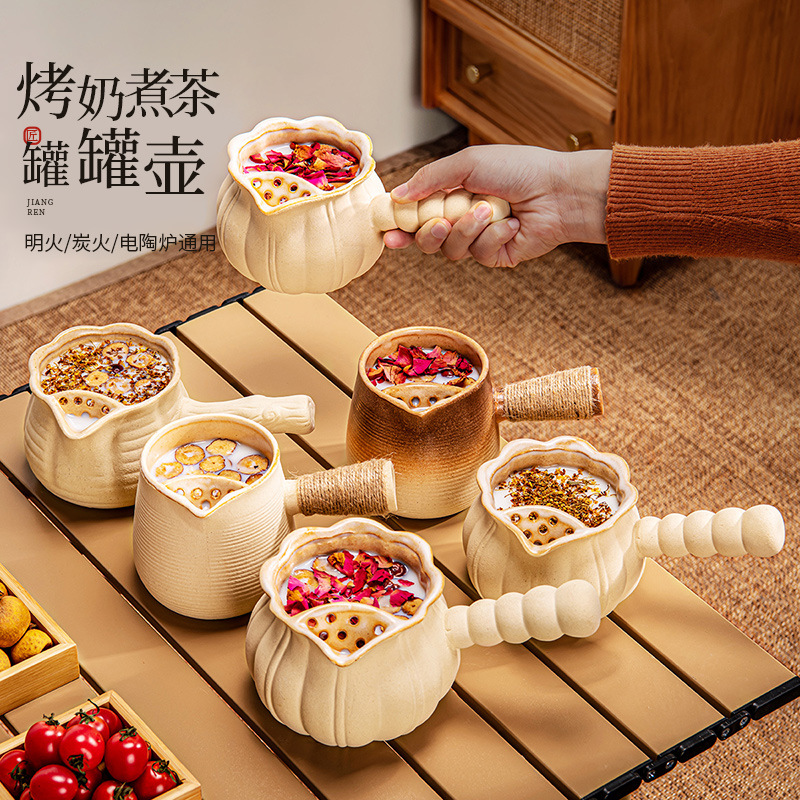 519046 Каменная керамика Lingluo горшок с боковой ручкой и перевернутой в печи (большой размер)
