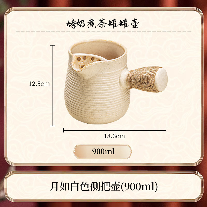 519047 Каменная керамика Lingluo белая горшок с боковой ручкой (большой размер)