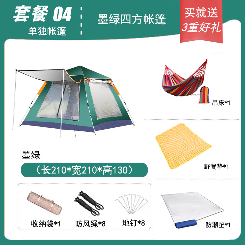 Темно-зеленый квадрат + влагонепроницаемый коврик + коврик для пикника + гамак