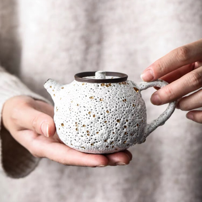 Главная страница > Чайник ручной работы Чжие в японском стиле бытовой керамический чайный сервиз Кунг-фу ручной работы золотой чайник червячка один горшок