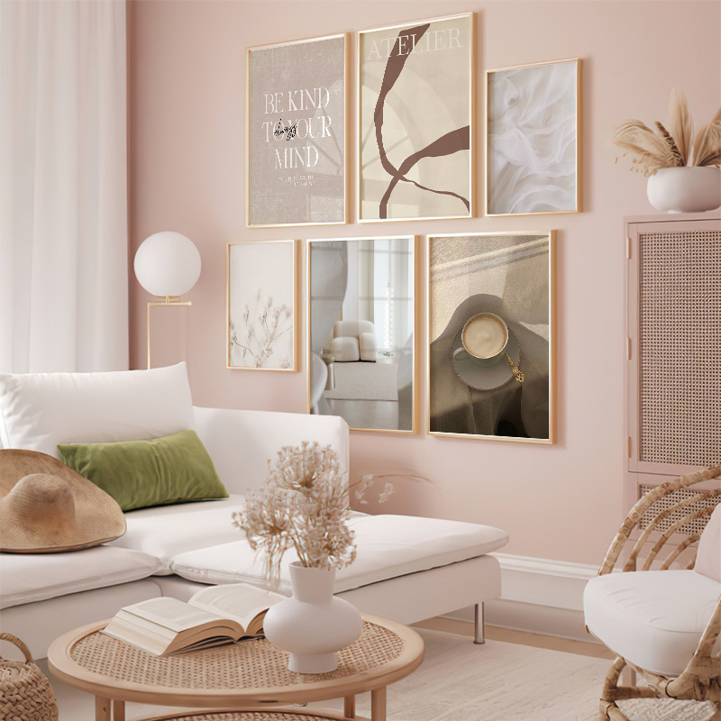 Северная современная гостиная диван фон стены декоративная живопись ins искусство нишевые комбинации висячие картины минималистский расширенный фрески