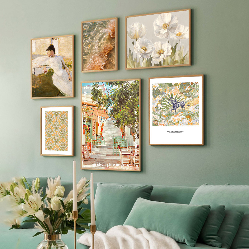 Главная страница > Гостиная декоративная роспись ins кремовый ветер диван фон настенная роспись небольшая свежая масляная живопись столовая кухня фреска