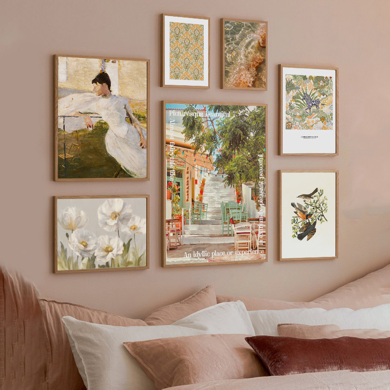 Гостиная декоративная роспись ins кремовый ветер диван фон настенная роспись небольшая свежая масляная живопись столовая кухня фреска