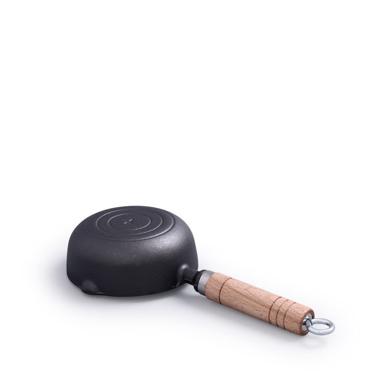 Главная страница > Новая чугунная сковорода с двумя отверстиями для слива масла, глубокая сковорода с защитой от брызг, деревянная ручка, плоское дно без покрытия, мини-сковорода для жарки яиц для домашнего использования.