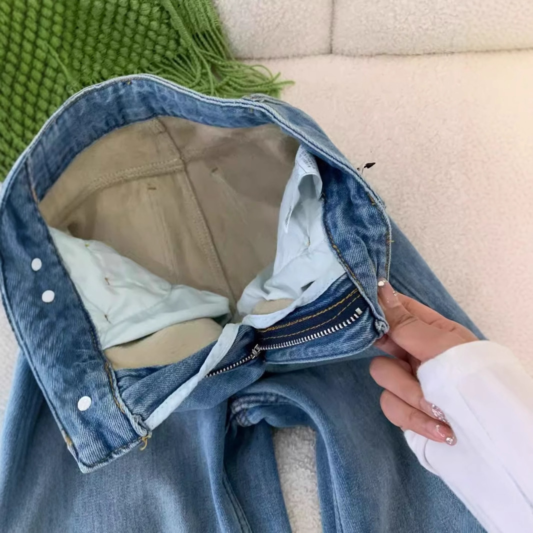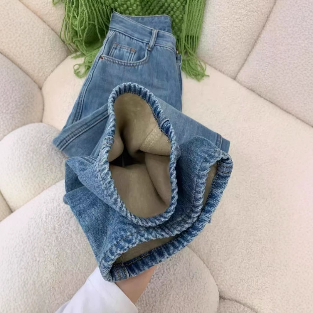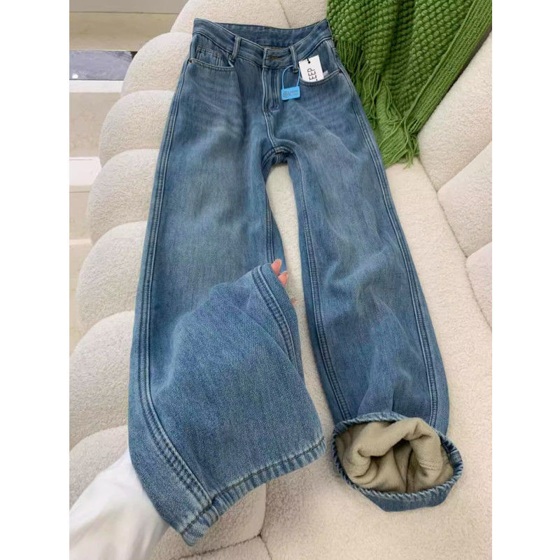 Главная страница > Синие бархатные свободные прямые джинсы женский 2024 осень и зима новая высокая талия тонкая и вертикальная узкая версия широкие брюки