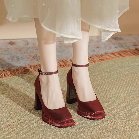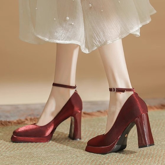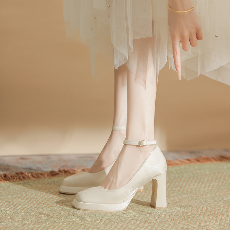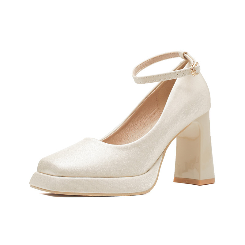 Главная страница > Белые водонепроницаемые туфли на высоком каблуке женский толстый каблук Мэри Джейн атласная квадратная голова свадебные туфли свадебные туфли