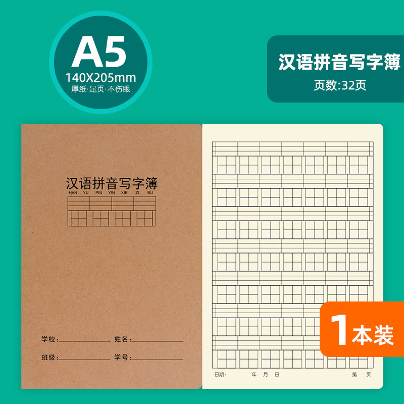 Книга для письма по китайскому пиньинь формата А5 (32 листа)/книга
