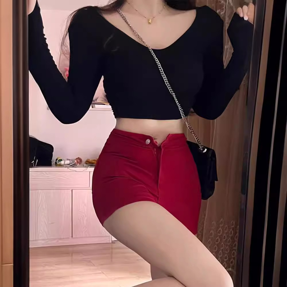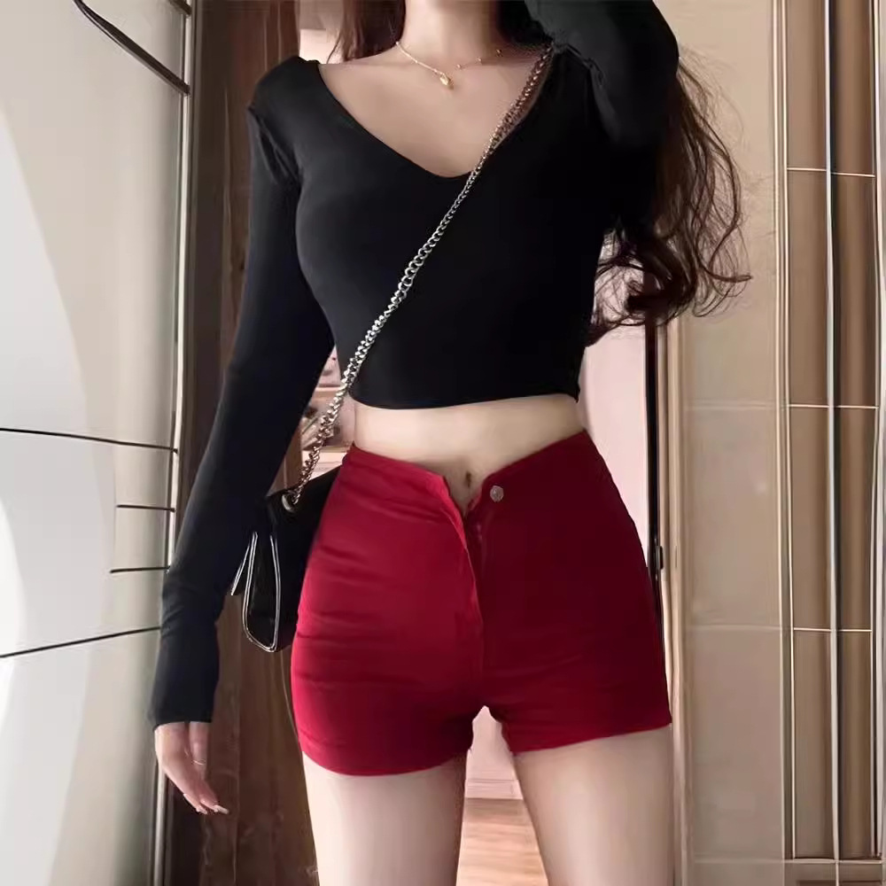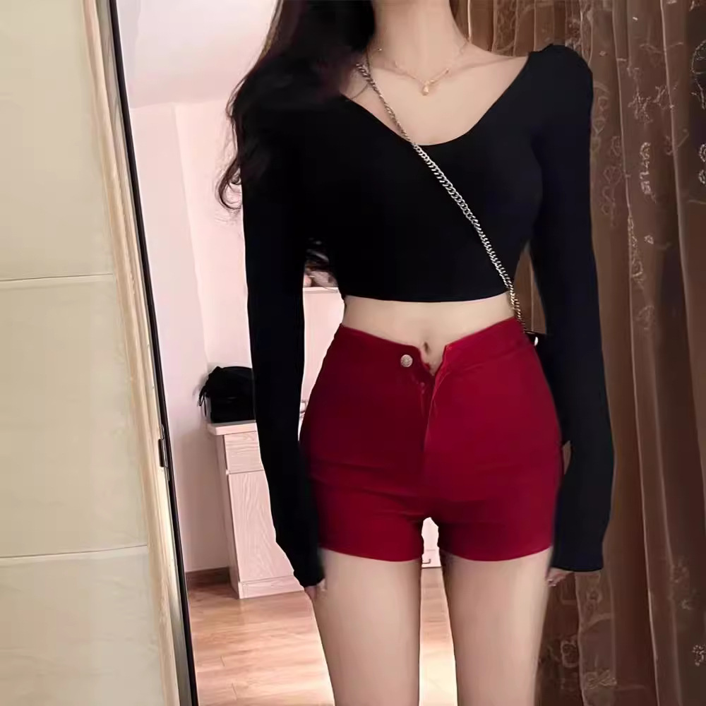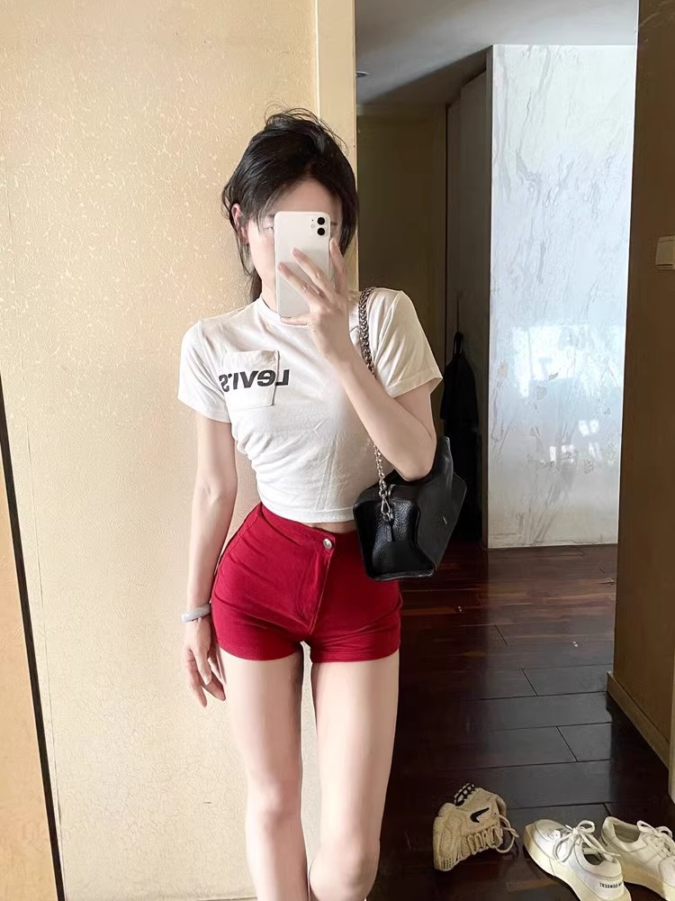 Главная страница > Американский новый стиль горячие девушки красные джинсовые шорты женские носить весной и летом 2024 с высокой талией, бедра, тонкие горячие штаны